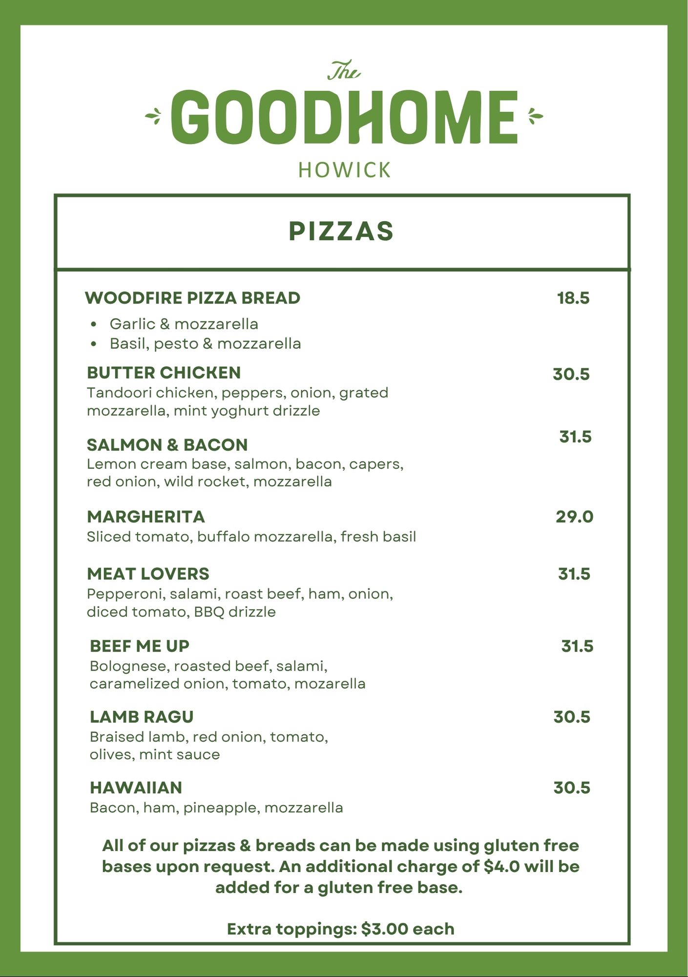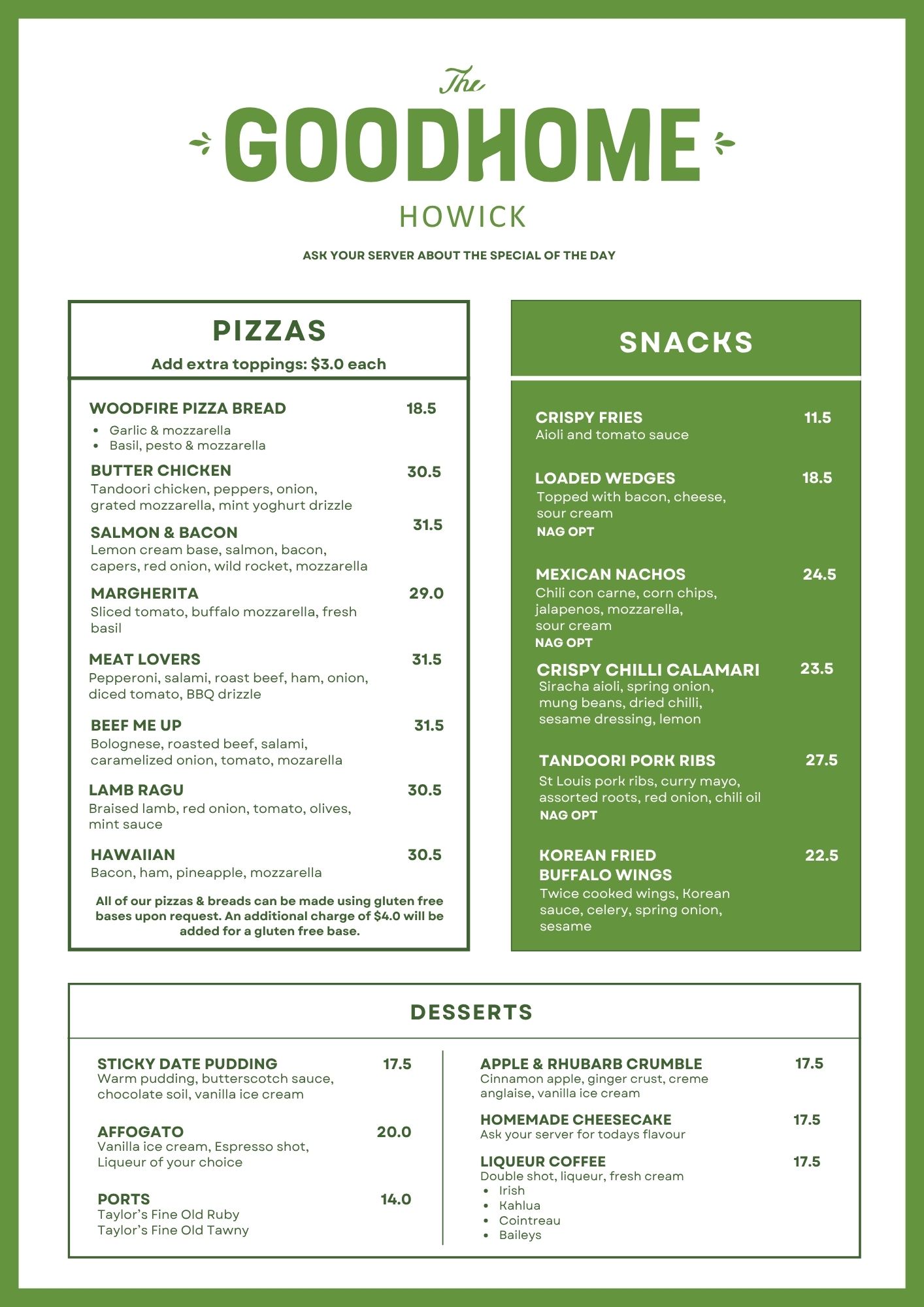 LETS EAT MAKE A RESERVATION BRUNCH / LUNCH / SNACKS / PIZZAS MON-SUNDINNERDESSERTKIDS MENUBAR SNACKS / PLATTERS / WOODFIRE PIZZASBEVERAGE MENUCHRISTMAS DAY LUNCH MENU (not available until Dec 2026)